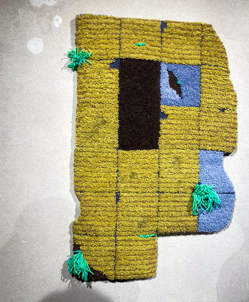 Lo centrífugo en “No hay cielo sin nubes” se hace presente en varias capas: la primera y más directa es la lectura de lo periférico y lo marginal, de todo lo que la urbe arroja hacia los límites. Allí se encuentra lo abyecto, el fracaso del proyecto posmoderno que elimina del centro todo aquello que no es útil para el progreso y las intimidades desencantadas. La segunda capa es la materialidad: las piezas tridimensionales escapan hacia los límites de lo que tradicionalmente se piensa como una pieza textil; por ejemplo, la suavidad de las lanas encuentra una línea de fuga hasta la dureza de la pandereta, así como el tiempo del bordado escapa hacia la velocidad del rayado en spray. Una tercera capa es la que envuelve a la exposición completa: todas las piezas se fugan del centro de la sala, son expresivamente ambiguas (como ya mencioné en la segunda capa) y se instalan como un espacio que adquiere protagonismo. Esto lo podemos ver en la pieza tridimensional de la pandereta, donde lo que se fuga es la figura de la gente, la comunidad, como si estuviese fuera de cuadro – en este sentido, las piezas de Claudia Gutiérrez tienen un carácter bastante cinematográfico. Finalmente, lo que queda es el paisaje, o mejor dicho – y como menciona Celeste Olalquiaga en el texto curatorial de la exposición- un post-paisaje, ya que al ser este de naturaleza centrífuga, sólo quedan residuos y fragmentos de lo que alguna vez lo fue. En “No hay cielo sin nubes” vemos la fuga del paisaje, sus fragmentos y residuos.